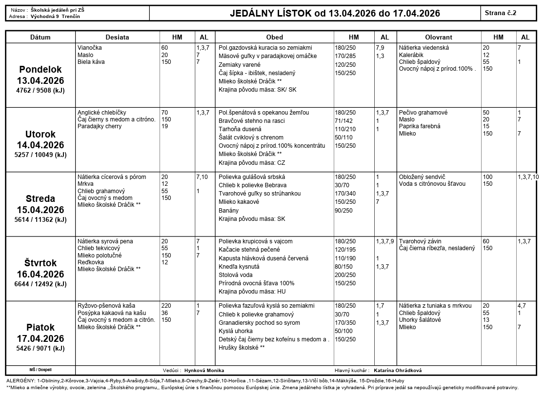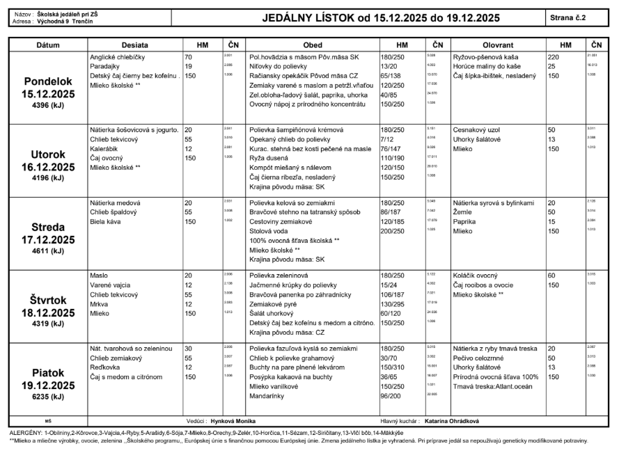Jedálny lístok Východná 9