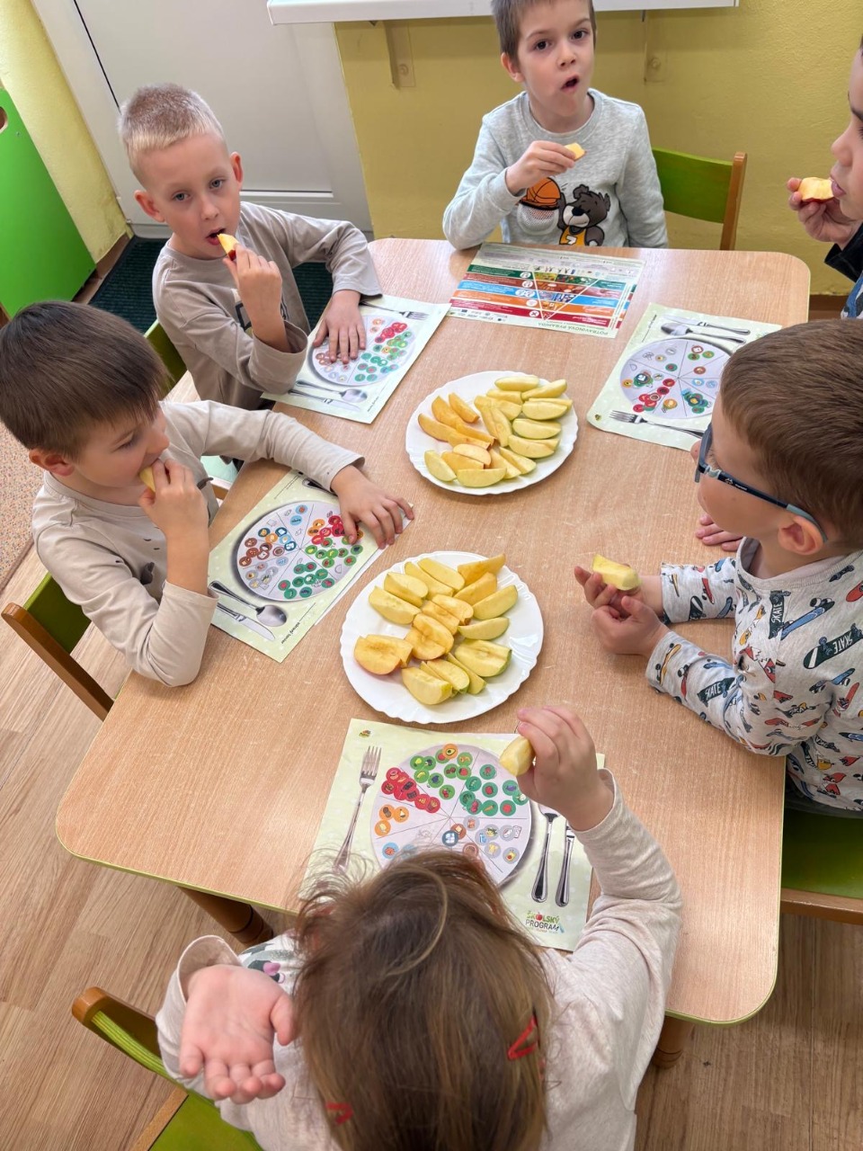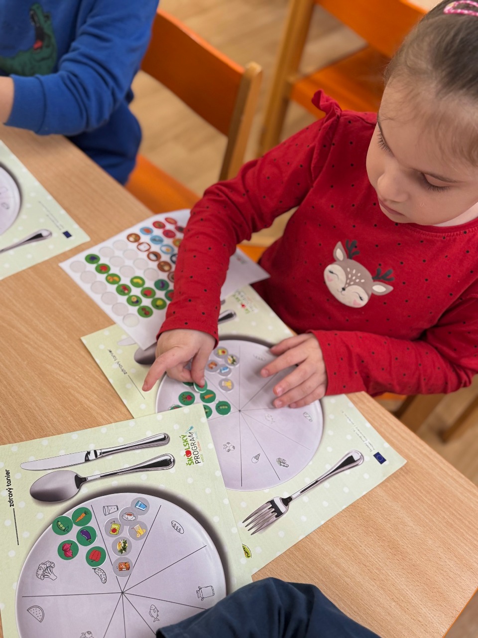 Dňa 17.3.2026 sme sa zapojili do školského programu cez nášho dodávateľa PLANTEX, ktorý zabezpečuje pravidelné dodávky čerstvého ovocia a zeleniny pre žiakov. Výchovno vzdelávacie aktivity boli realizované v rámci sprievodných vzdelávacích opatrení Školského programu s podporou z EÚ pre naše deti z EP východná 9. Aktivity boli spojené z ochutnávkou dodaného ovocia a prírodných štiav, ktoré žiaci konzumovali. Deti si osvojovali poznatky a princípy potravinovej pyramídy, deti si nalepovali nálepky na zdravý tanier a vyfarbovali pastelkami pracovný list. V aktivite „ Zdravý tanier“ išlo o sprievodné vzdelávacie opatrenie projektu „ Školské ovocie“. Jeho cieľom bolo viesť deti k zdravému stravovaniu a zvýšiť konzumáciu ovocia a zeleniny.
